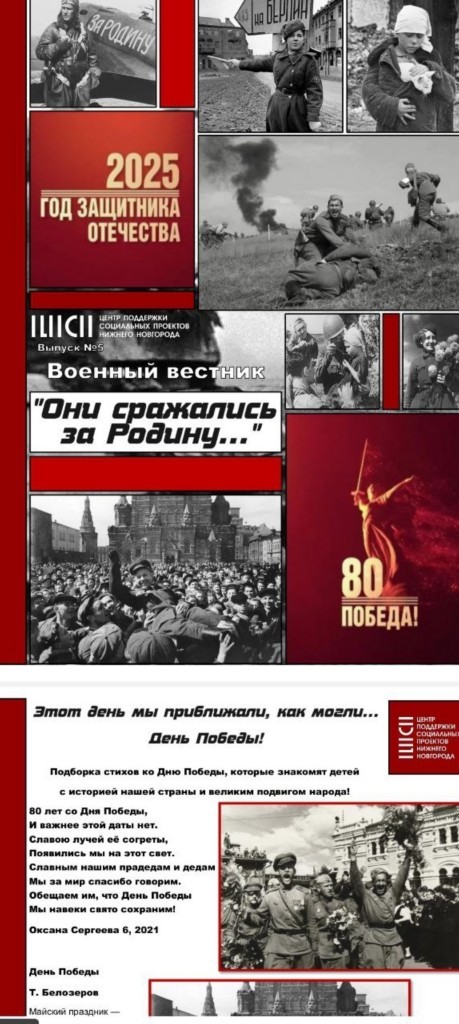 «Произведения принадлежат ФБУЗ ФЦГиЭ Роспотребнадзора, распространение возможно с обязательным указанием на принадлежность. Сказки и рассказы читает Альбина Ремнева» 11.07.2025 По результатам Всероссийского конкурса, проводимого Минфином России и Центробанком России, Нижегородская область получила статус "Столица финансовой культуры 2025", представив в финале конкурса новый интерактивный проект "Резидент столицы финансовой культуры". Цель проекта "Резидент столицы финансовой культуры" - популяризация финансовой культуры и киберграмотности с помощью игровых, интерактивных и соревновательных элементов для формирования у жителей навыков финансово грамотного поведения и осознанного управления своими деньгами. 10.07.2025 Безопасность в жару Рекомендации по питанию, питьевому режиму, отдыху на природе в условиях жаркой погоды 02.07.2025 01.07.2025 ИНФОРМАЦИЯ ОТ ПРОКУРАТУРЫ г. НИЖНЕГО НОВГОРОДА Введен реестр должников по алиментам Какая уголовная ответственность предусмотрена за невыплату заработной платы ? Изменен вид уголовного преследования клеветы Особенности предоставления стандартных налоговых вычетов на детей в 2025 году С 1 сентября 2025 года вступают в силу Правила организации деятельности организаций социального обслуживания Что такое конфликт интересов Введена административная ответственность за продажу несовершеннолетним безалкогольного тонизирующего напитка (в том числе энергетического) 30.06.2025 Социальный проект «Через века, через года, - помните!» (автор проекта – Барулева Юлия Анатольевна) стал победителем конкурса общественных инициатив «СВЕТИ», организатором которого является АНО "Центр поддержки социальных проектов Нижнего Новгорода" при поддержке администрации города Нижнего Новгорода. В рамках реализации проекта был создан видеофильм «Дети войны», по одноименному стихотворению Л. Тасси. Актерами стали воспитанники МБДОУ «Детский сад №165». Видеофильм позволяет окунуться в один день жизни маленьких детей во время Великой Отечественной войны, мы вместе с героями видеофильма переживаем эти горькие события и учимся беречь мир. disk.yandex.ru/i/GKU1KMhx... 24.06.2025 16.06.2025 Социальный проект «Через века, через года, - помните!» (автор проекта – Барулева Юлия Анатольевна) стал победителем конкурса общественных инициатив «СВЕТИ», организатором которого является АНО "Центр поддержки социальных проектов Нижнего Новгорода" при поддержке администрации города Нижнего Новгорода. На базе МБДОУ «Детский сад №158» в ходе реализации проекта «Через века, через года, - помните!» тиражировалась газета № 1 - военный вестник «Они сражались за Родину…». disk.yandex.ru/i/tCstzrH2... 04.06.2025 Информационные материалы по программе долгосрочных сбережений в 2025 году 04.06.2025 30.05.2025 Социальный проект «Через века, через года, - помните!» (автор проекта – Барулева Юлия Анатольевна) стал победителем конкурса общественных инициатив «СВЕТИ», организатором которого является @cpspnn52 (АНО "Центр поддержки социальных проектов Нижнего Новгорода") при поддержке администрации города Нижнего Новгорода. На базе МБДОУ «Детский сад №158» в ходе реализации проекта «Через века, через года, - помните!» проводилась акция «Белый Журавль». Педагоги группы старшего возраста провели беседу с детьми о героизме, мужестве. Ребята познакомились с интересной легендой о белых журавлях, которая лег